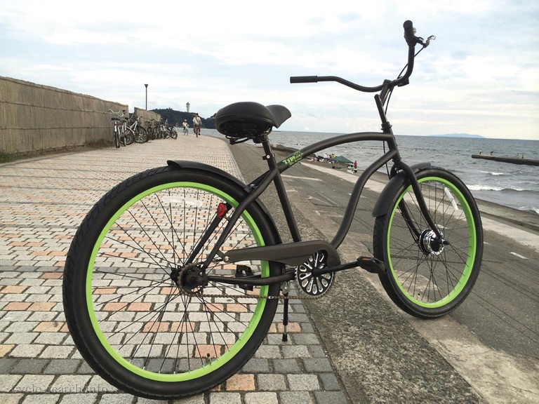 | 車体の詳細 | RAINBOW TYPE-X 26CRUISER MatteBlack×GreenRim レインボー ビーチクルーザー 26インチ 購入時期:2016年9月 カスタム箇所: グリップを黒→黄緑色に変更 泥除け→長めに変更 スタンドを後輪にも追加(スタンド2個ある状態) |